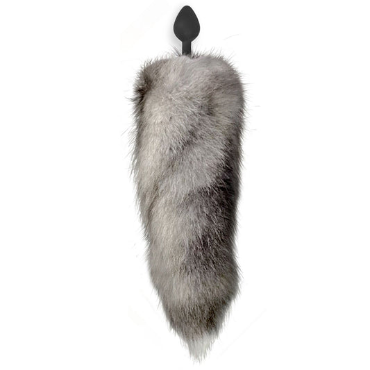 Силіконова анальна пробка з хвостом із натурального хутра Art of Sex size M Artctic fox