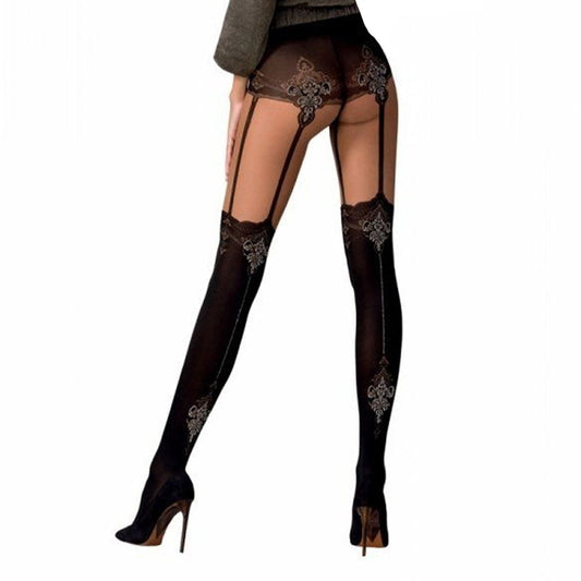 Колготки-бодістокінги Passion S012 One Size, Black, імітація панчіх, пояса та мереживних трусиків