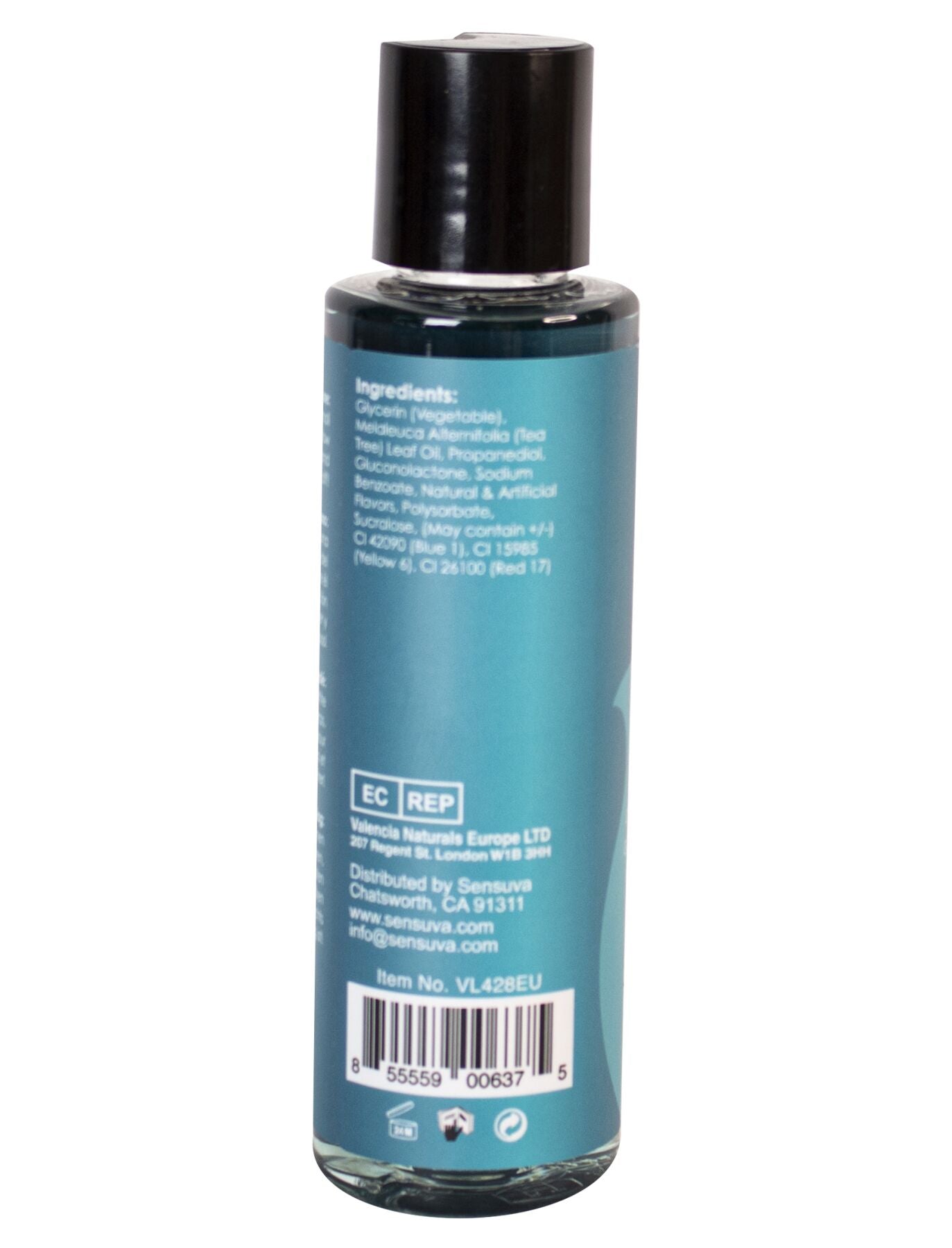 Склад: Glycerin (Vegetable), Tea Tree Leaf Oil, Propanediol, Gluconolactone, Sodium Benzoate, Natural & Artificial Flavors, Polysorbate, Sucralose, Cl 42090, Cl 15985, Cl 26100.