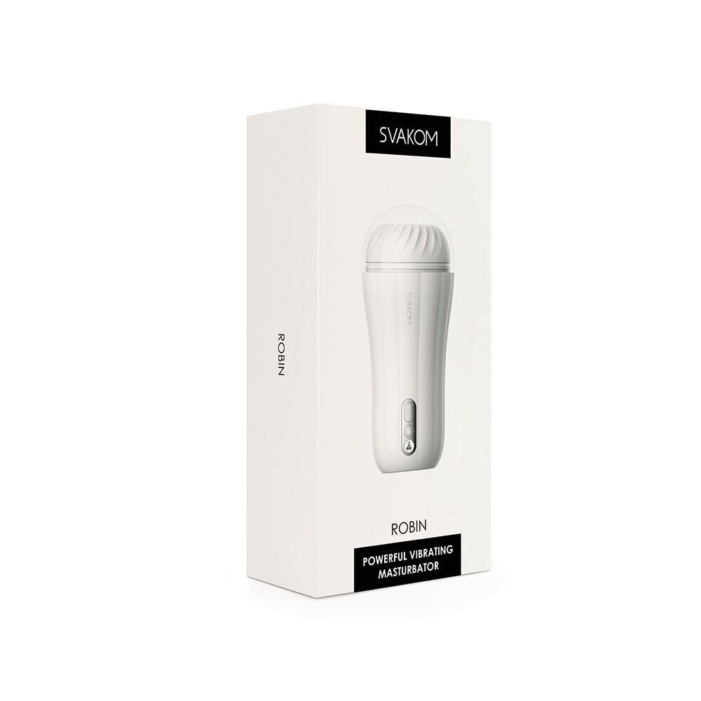Нічого зайвого — тільки задоволення твоїх бажань! Мастурбатор з вібрацією Svakom Robin White спеціально створений для тих, хто цінує яскраві відчуття. Його особливості: