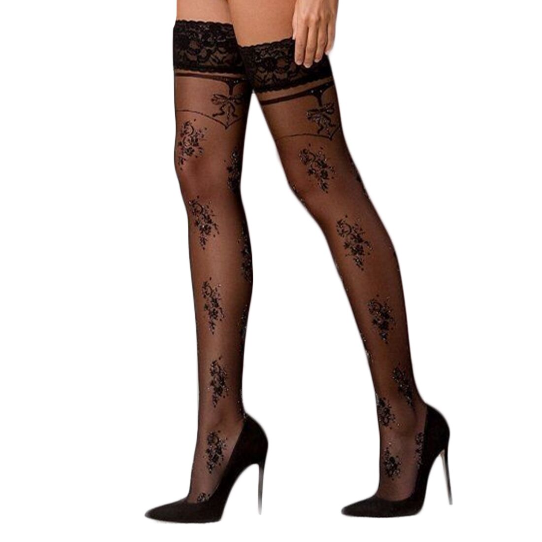 Продемонструйте вищий пілотаж жіночності, ніжності та легкості, купіть панчохи Passion ST119 1/2 чорні, на ажурній силіконовій резинці, з квітковим декором та люрексовою ниткою.