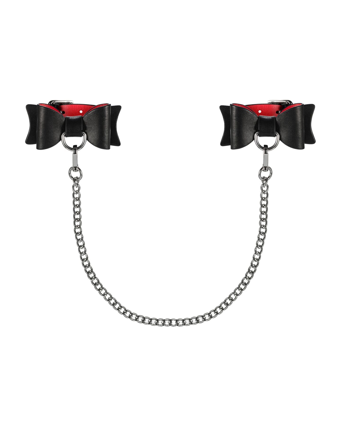 Шкіряні наручники-банти з довгим ланцюгом Obsessive A745 cuffs упаковані в гарну коробку, яку так і хочеться презентувати своєму партнерові чи партнерці.