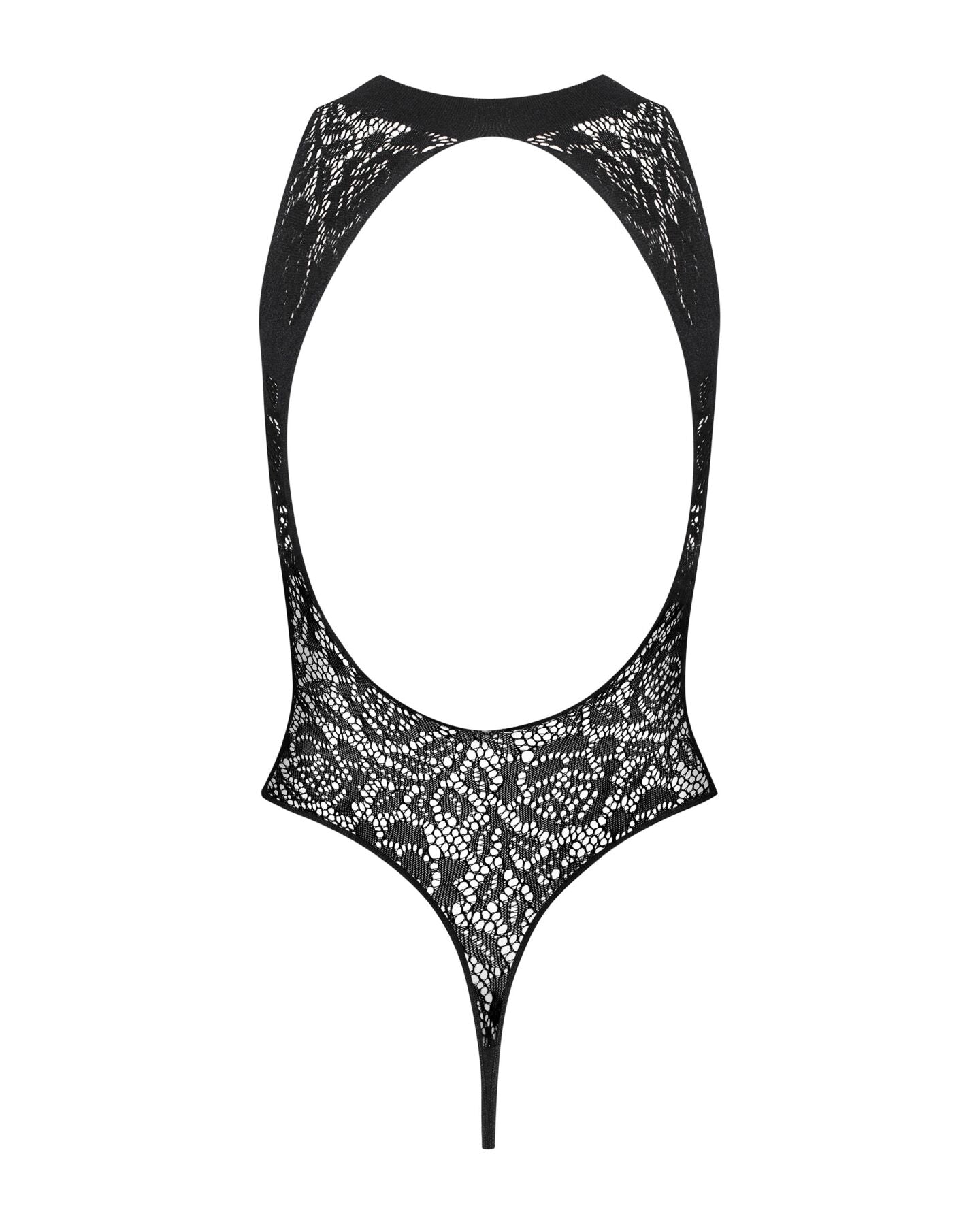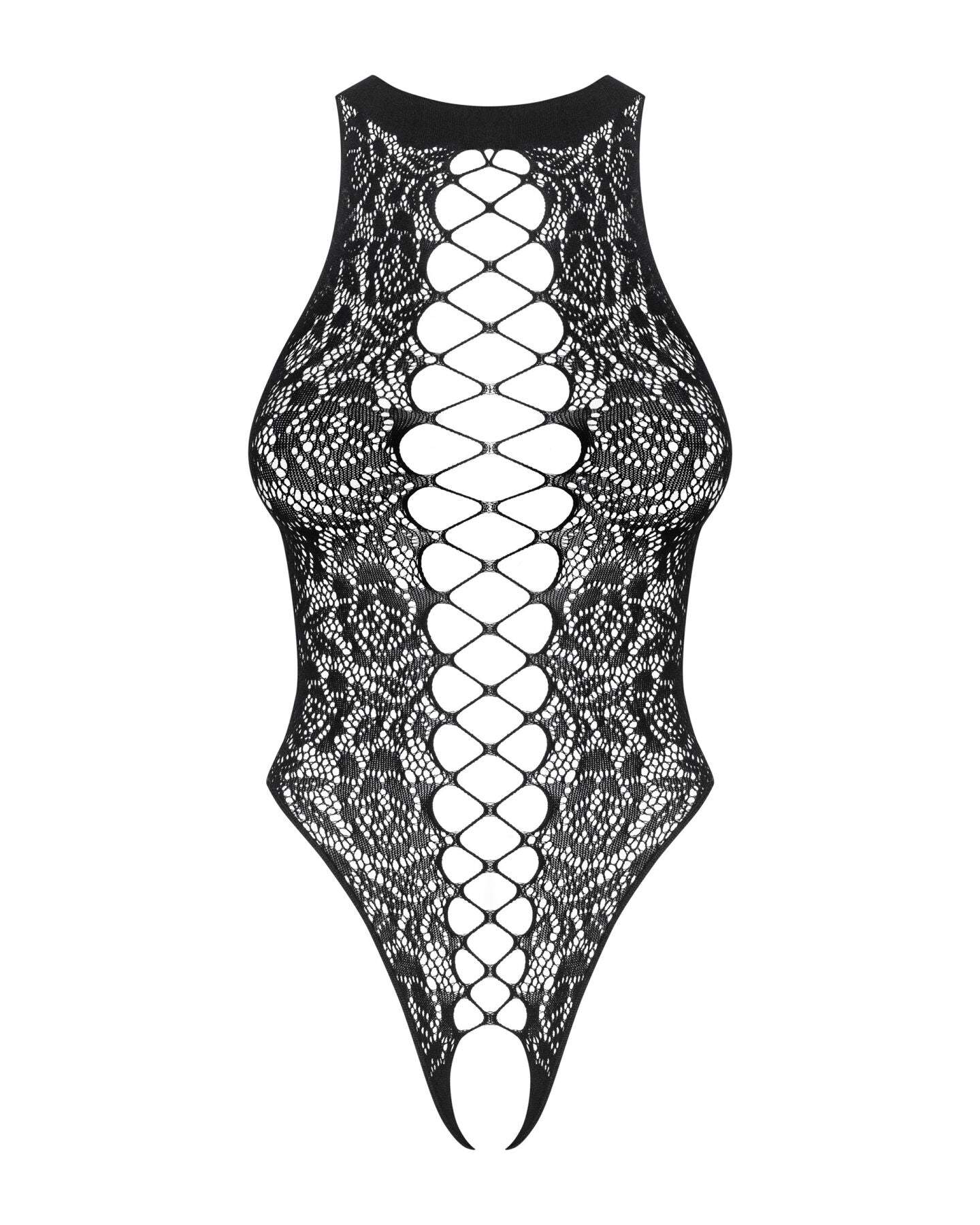 Ажурний бодістокінг із ефектом шнурівки Obsessive B129 teddy black XL/XXL, чорний, з доступом