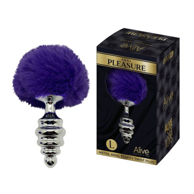 Анальна рельєфна пробка Alive Anal Pleasure з темно-фіолетовим хвостом, L