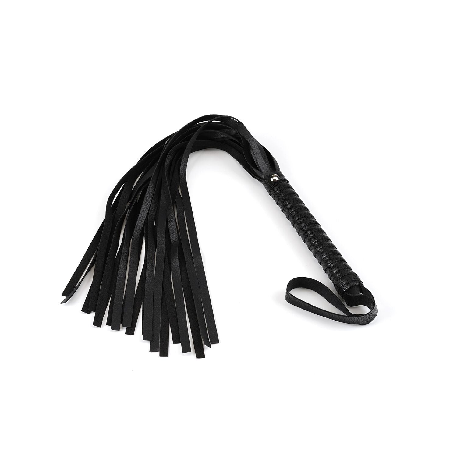 9. Флогер з екошкіри, з обплетеним руків’ям та петлею для надійного захоплення, впевненого замаху та потужного удару. Флогер — ідеальний девайс для початківців, адже ним можна і гладити, і шльопати і карати. Загальна довжина: 54 см, діаметр ручки 2,1 см.