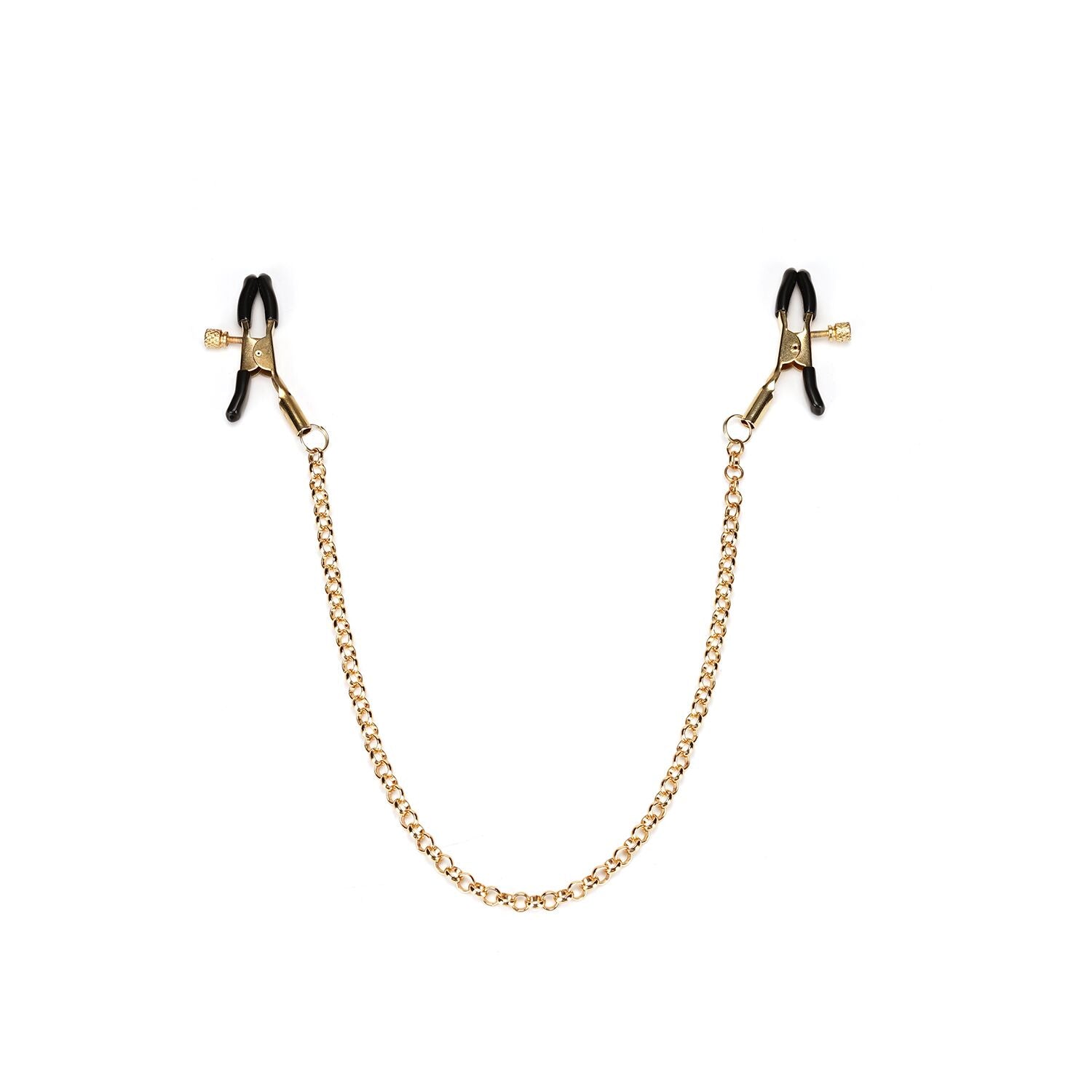 8. Затискачі на ланцюжку для сосків. Затискачі загвинчуються, щоб відрегулювати силу стискання. Силіконові накладки дають змогу не пошкодити сосок навіть за дуже сильного впливу! Ланцюжок має не просто шикарний вигляд, але й дає можливість додатково пограти з відчуттями: легко потягніть за ланцюжок, щоб враження від затискачів стали більш яскравими. Загальна довжина (затискачі + ланцюжок): 48 см.