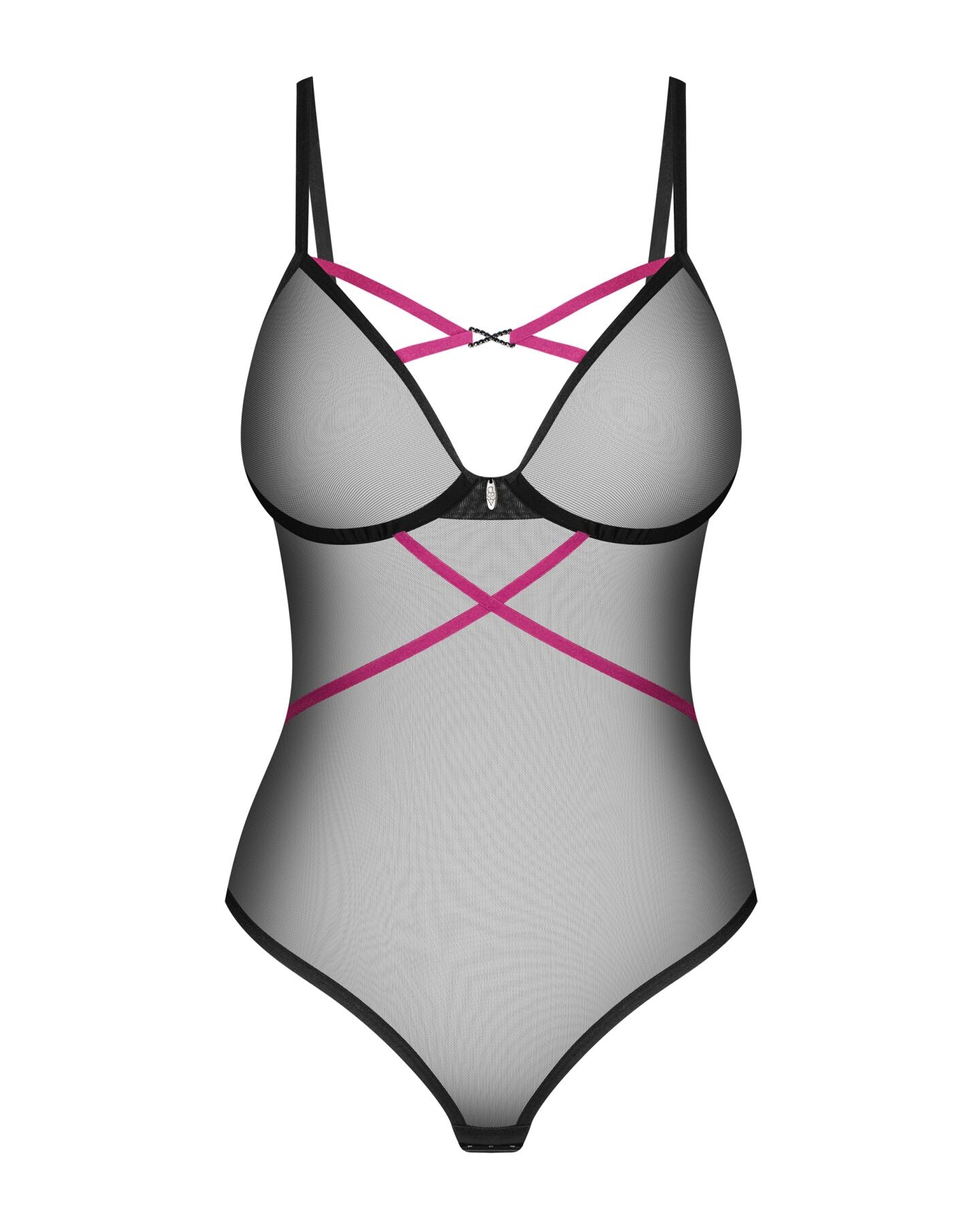 Шукаєте еротичну білизну з «родзинкою», але водночас лаконічну та зручну для тривалого носіння? Рекомендуємо вам купити чорне боді Obsessive Novenes teddy із шовковистої прозорої сітки, прикрашене тонкими пурпуровими стрічками.