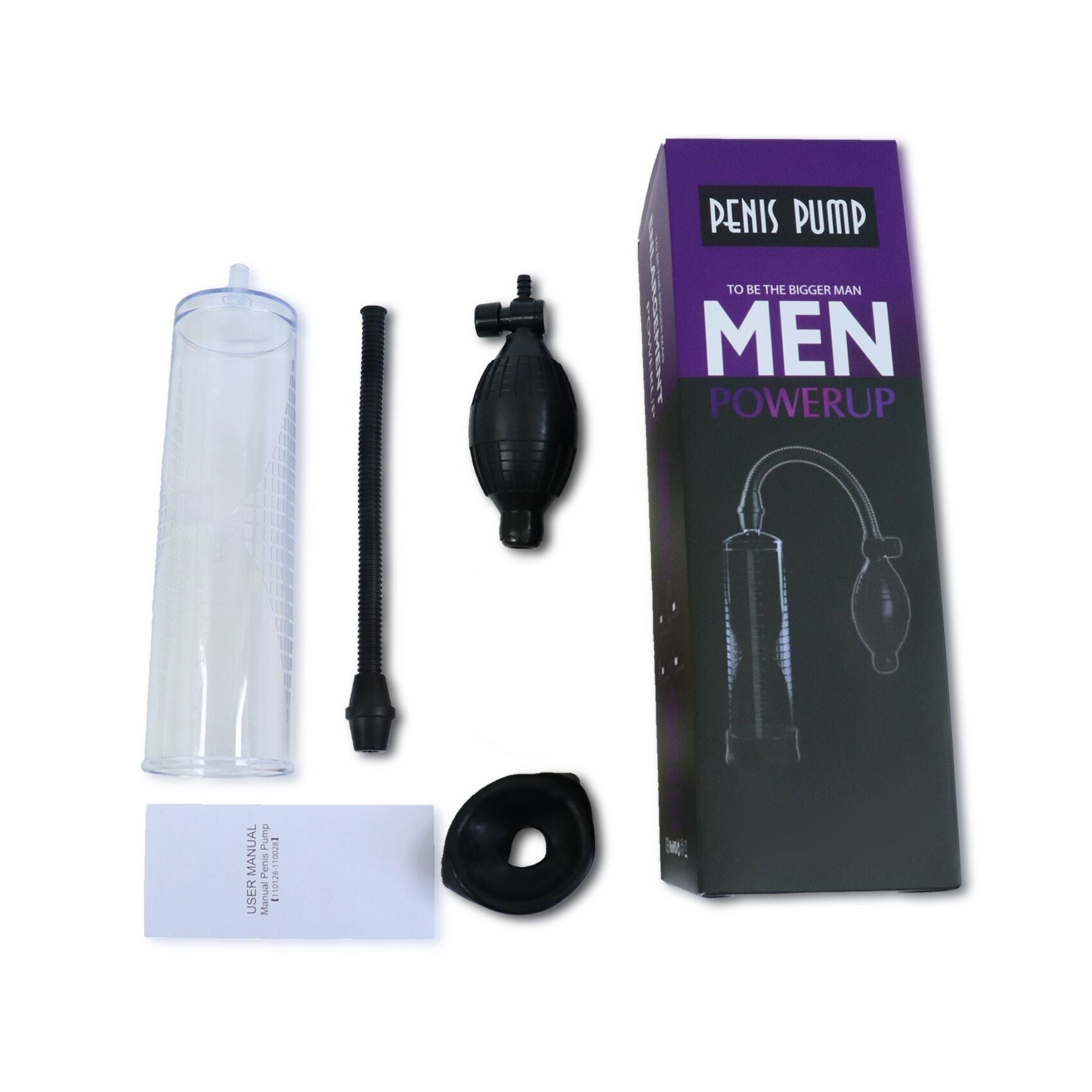 Недорога ручна помпа середньої потужності – те, що потрібно новачкові для ефективного збільшення члена. Крім того, вакуумна помпа допоможе в боротьбі з еректильною дисфункцією та принесе задоволення (відчуття від вакууму дуже інтенсивні та яскраві). Також помпи для члена покращують кровообіг та усувають застійні явища в органах малого тазу, що є чудовою профілактикою багатьох чоловічих захворювань. Вакуумна помпа Men Powerup із ручною “грушею” – це: