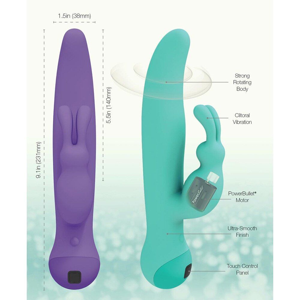 Вібратор повністю покритий преміальним силіконом, що робить його неймовірно приємним на дотик, безпечним і повністю водонепроникним. Перевірена форма кролика з довгими вушками дозволить вам відчути оргазм на всі 100% або навіть 200%. А головка, що обертається, зробить вашу насолоду максимально глибокою і повною. Причому, управляти тілом вібратора і відростком-кроликом можна окремо! До речі, керування тут просто приголомшливе: це сенсорна панель, і потрібно всього лише провести по ній пальцем вгору або вниз для контролю вібрації відростка, або вліво-вправо, щоб регулювати вібрацію тіла.