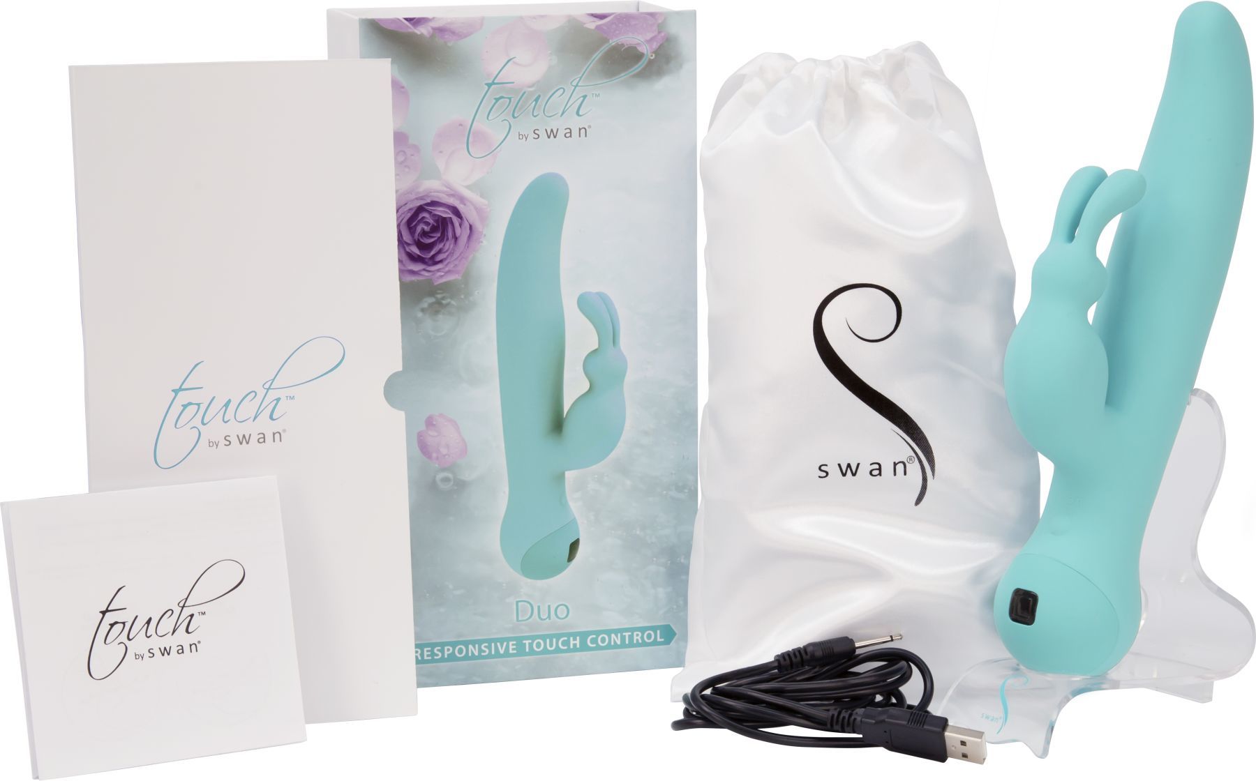 Вібратор-кролик з сенсорним управлінням і ротацією Touch by SWAN - Duo Teal, глибока вібрація