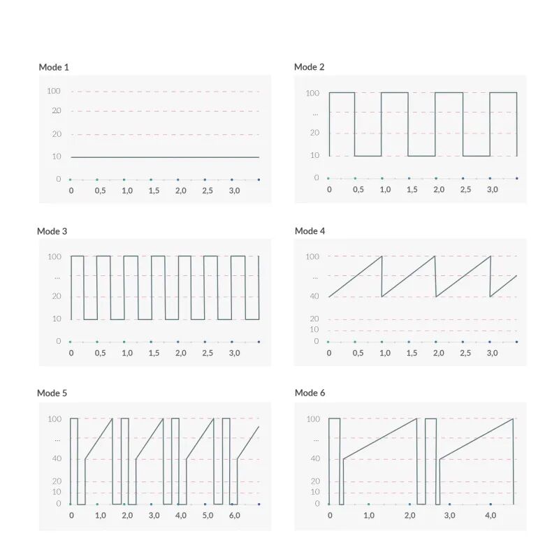 • для кожного режиму передбачено по 5 рівнів інтенсивності, від дуже ніжного впливу до суперпотужного для вибухових оргазмів!