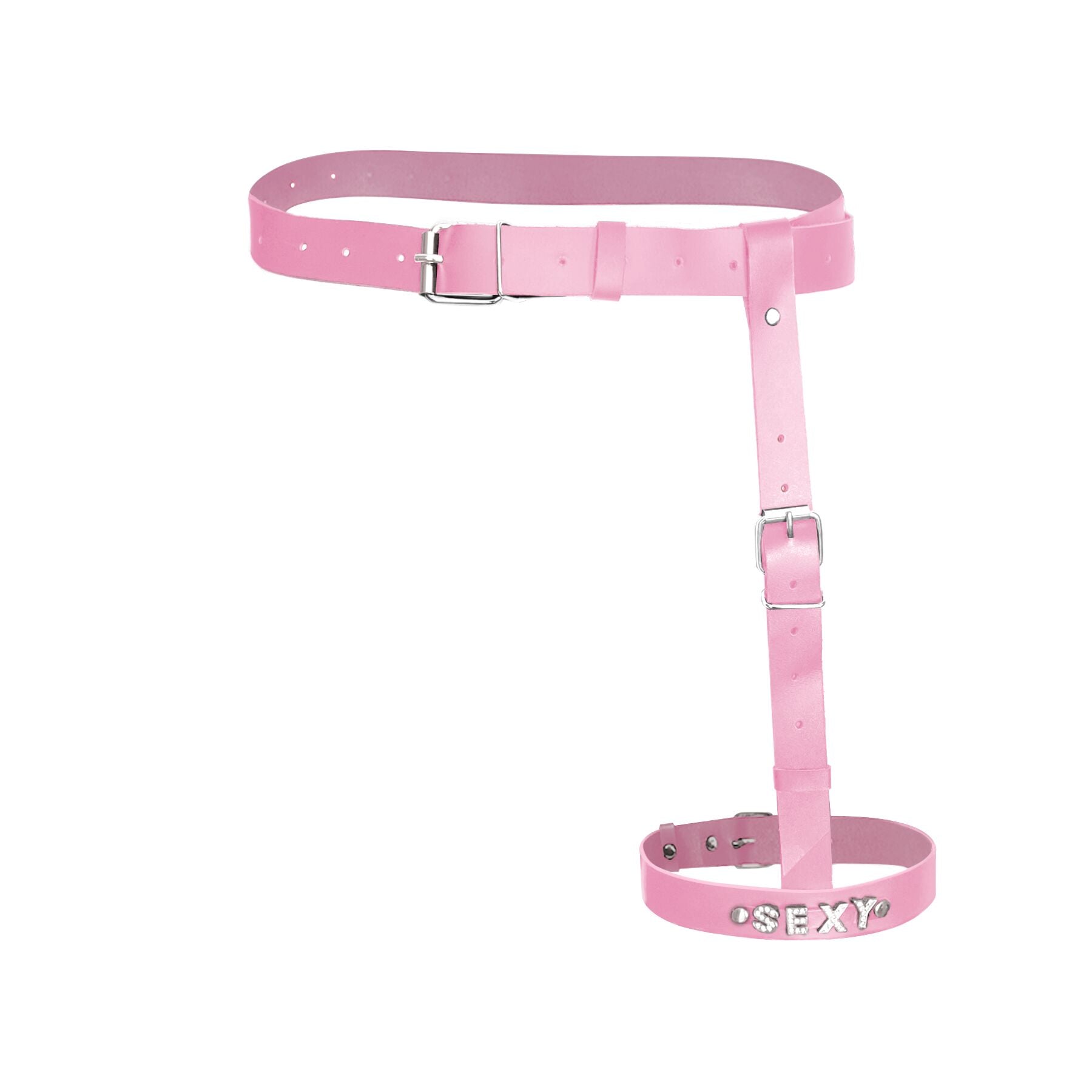 Гартер на ногу Art of Sex - Naomi з написом SEXY, натуральна шкіра, розмір XS-2XL, колір рожевий