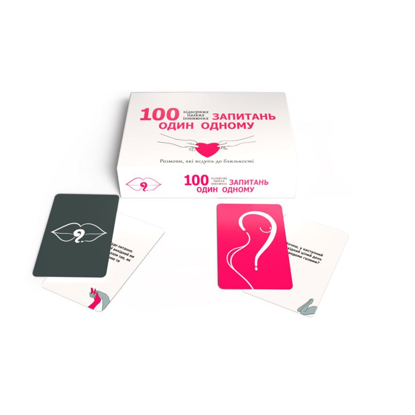 Картки з інтимними запитаннями — це ключі до найпотаємніших думок і бажань вашого партнера. Ви почергово розкриваєте свої уподобання та таємниці один одному. Приготуйтеся до подорожі у світ чуттєвої пристрасті. «100 запитань один одному» — це не просто гра, це шлях до незабутньої близькості та взаєморозуміння. Ви відкриєте один одного з нового боку й поринете в потік інтимних розмов, які розпалять вогонь пристрасті та подарують неповторні моменти ваших стосунків.