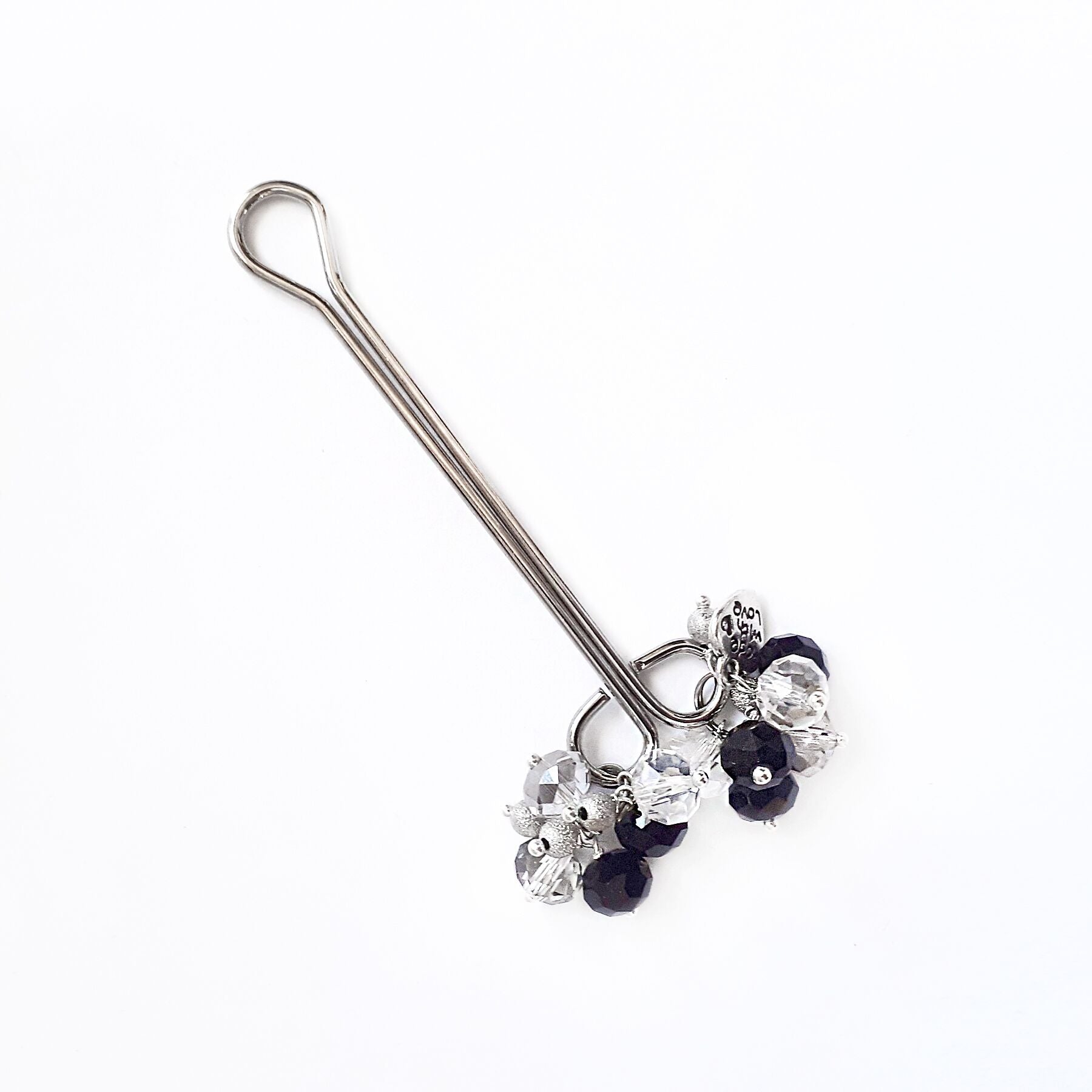 Ніжний, але жорсткий затискач для клітора з декоративною підвіскою, підійде для жінок, які не можуть жити без гострих відчуттів в інтимному житті. Затискач досить безпечний і простий у використанні, має силіконові наконечники щоб не травмувати шкіру, і регулятор, який регулює ступінь стиснення.
