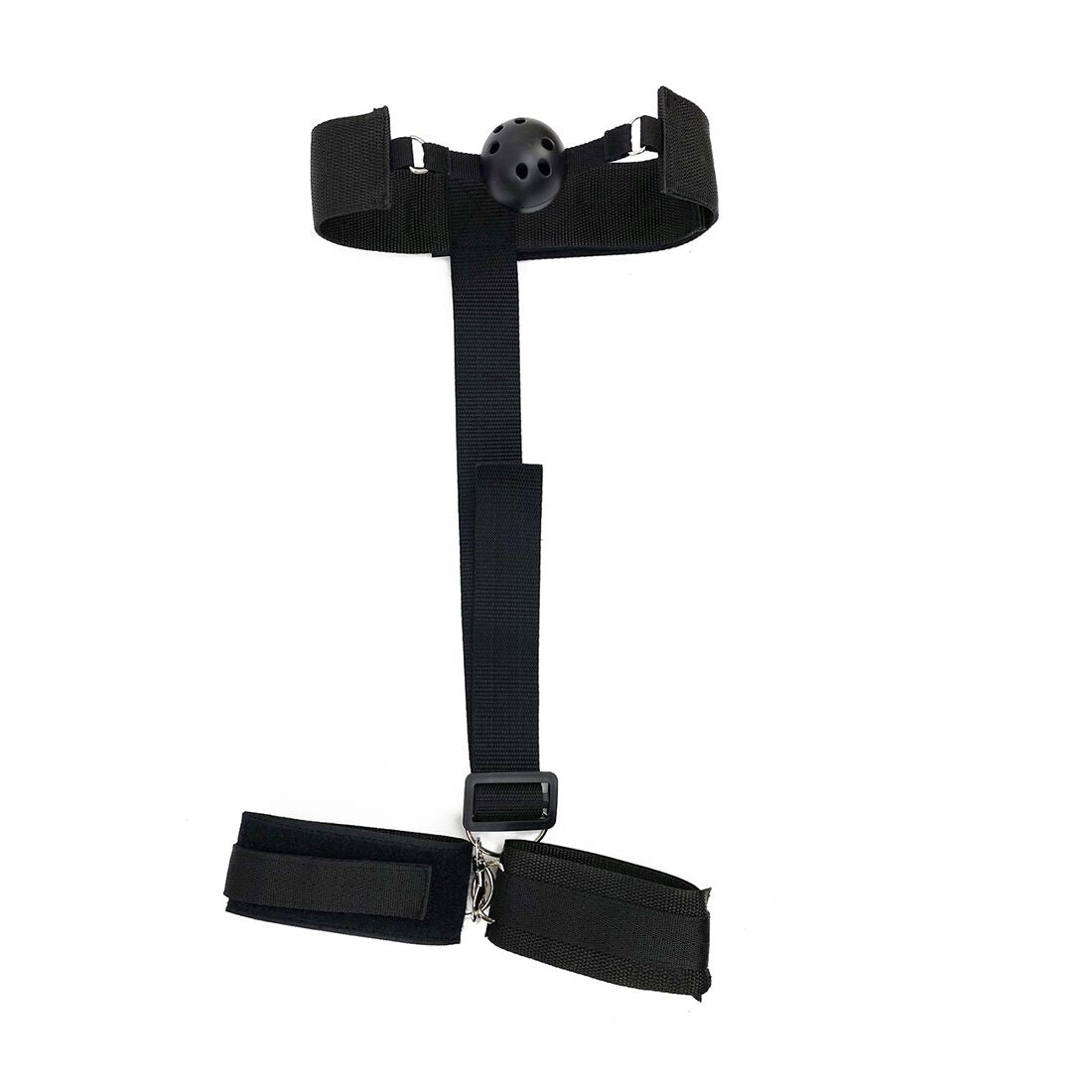 Кляп з пластиковою кулею та наручниками Art of Sex – Handcuffed Gag, чорний