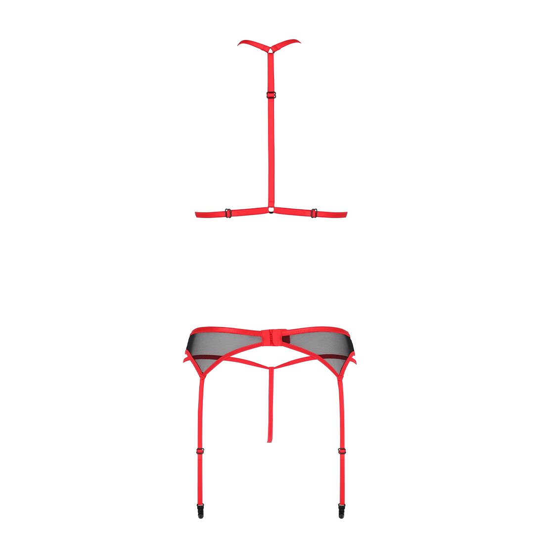 Комплект білизни Passion SATARA SET S/M red, топ, пояс для панчіх, стрінги