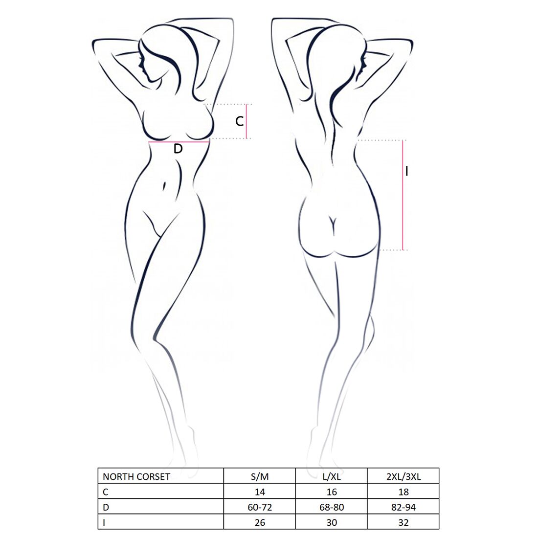 Пропонуємо купити сексуальний корсет PASSION NORTH CORSET чорний, виготовлений з фатину і лами з мереживними вставками. Елегантна білизна чорного кольору красиво підкреслює всі достоїнства жіночої фігури, вміло маскуючи недоліки. Відвертість білизни зашкалює. Відкритий бюстгальтер з кісточками підтримає вашу груди, роблячи їх ще більш апетитними і бажаними. Стрічки на животі так і ваблять розв'язати їх. Відчуйте себе у новому амплуа! Побачивши вас в такому вбранні, ваш партнер неодмінно захоче вас.