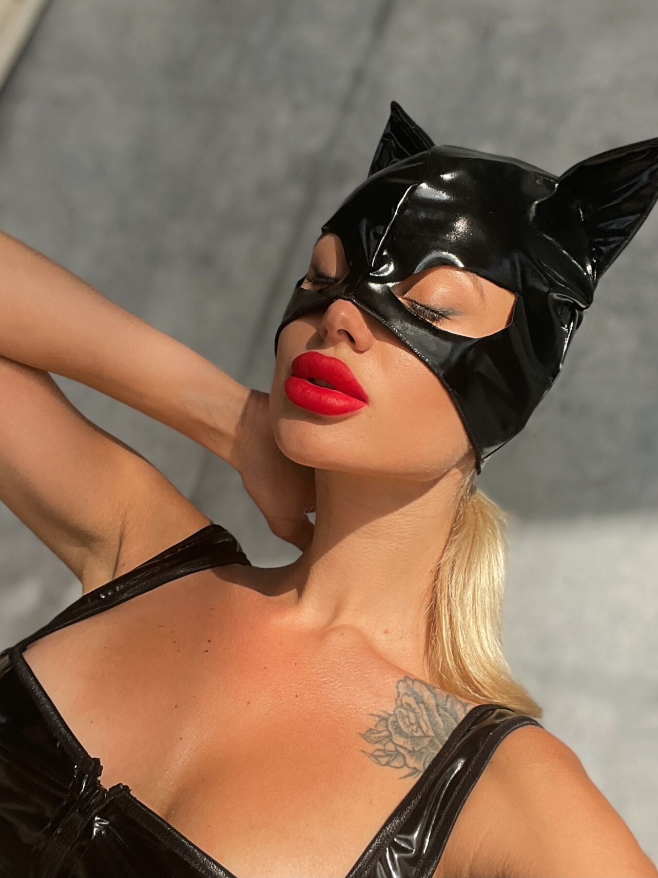 Лакована маска "Кішка" виготовлена ​​з м'якого і еластичного матеріалу, що імітує лаковану шкіру. Маска на приємній не синтетичній підкладці, з акуратними не жорсткими швами, тому її використання не буде викликати дискомфорту. Грайливо стирчащі м'які вушка і "котячий" розріз для очей, допоможуть Вам відчути себе справжньою героїнею фільму або коміксів про супергероїв. Маска закриває більшу половину обличчя і одягається, як шапочка, що дає можливість не робити яскравий макіяж, Ви можете просто злегка підвести очі і додати яскравий акцент у вигляді червоної помади.