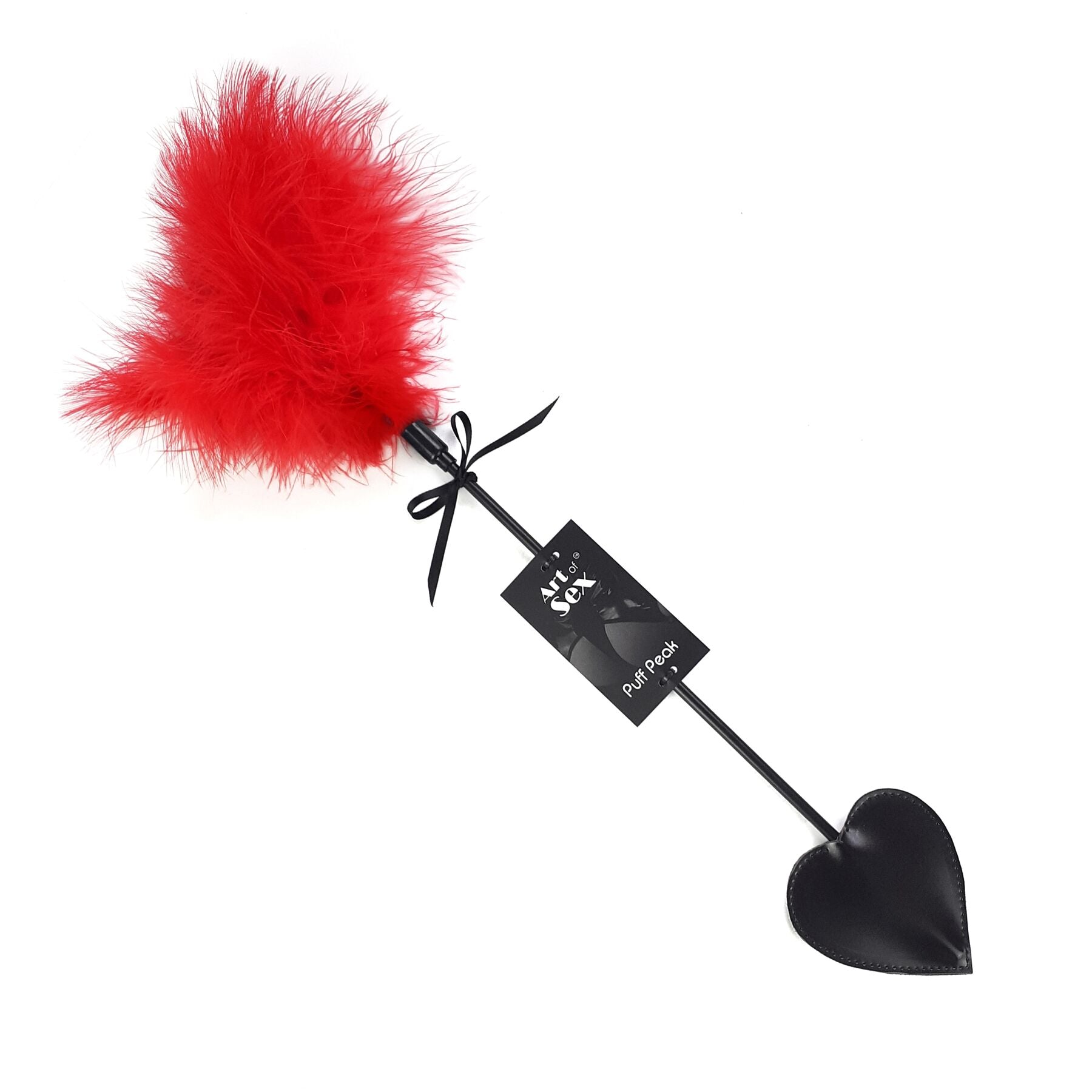 Пропонуємо купити лоскітку зі шльопалкою Піка Art of Sex – Puff Peak. Цей оригінальний аксесуар може стати незамінним атрибутом у солодких прелюдіях та сміливих рольових іграх. Зав’яжіть партнеру очі й пестіть його тіло ніжними дотиками пухових пір’їнок. Протилежний кінець аксесуара — шльопалка у вигляді сердечка — чудове рішення для контрастного застосування з поплескуваннями або більш інтенсивним покаранням. Не залишайте без уваги ерогенні зони коханого й обов’язково слідкуйте за його реакцією — вона не змусить на себе чекати. Чергування відчуттів та збудження, пов’язане із цим, — ось, чого варто очікувати під час використання цієї милої дрібнички.