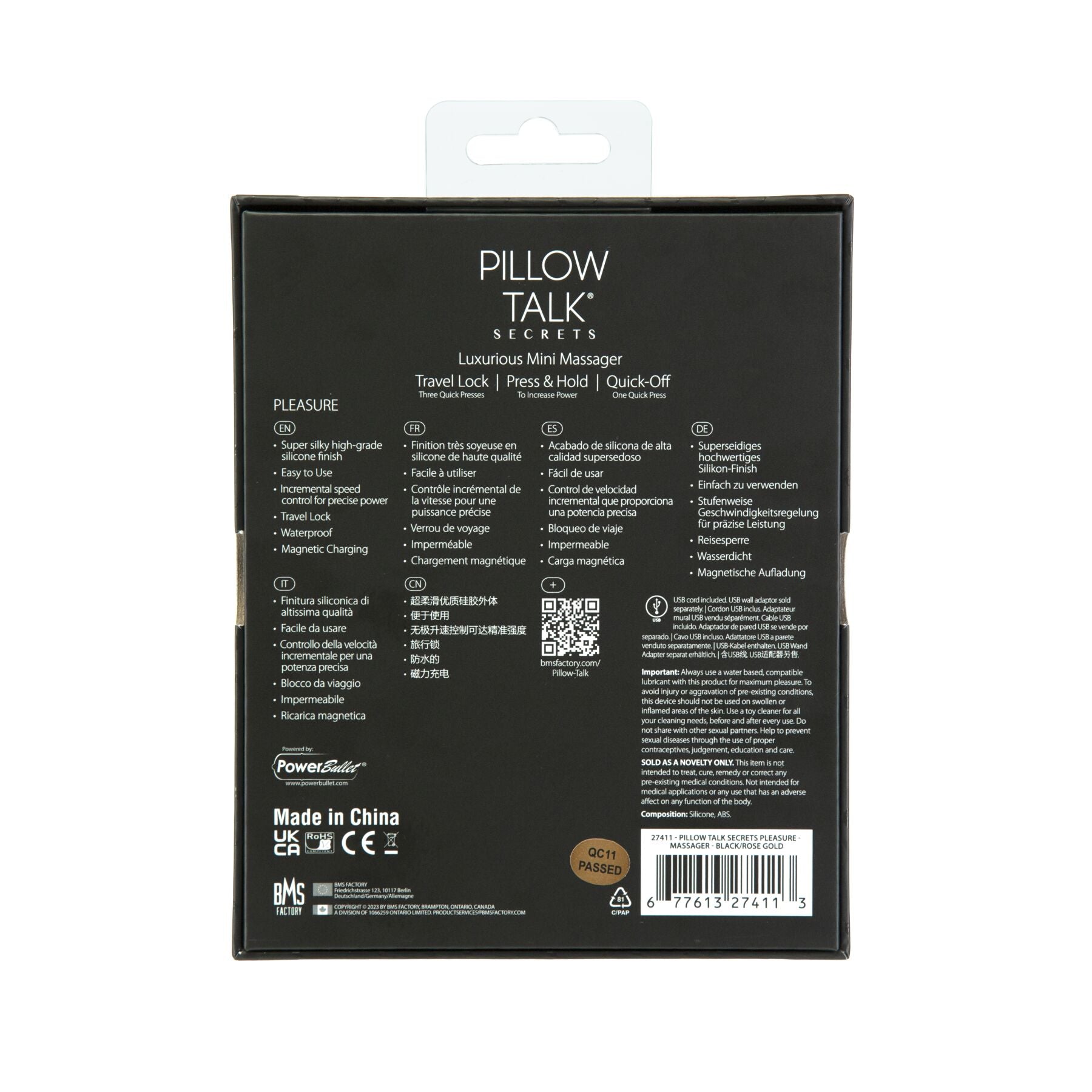 Вібромасажер Pillow Talk Secrets - Pleasure стане вашим улюбленим джерелом задоволення і подарує неймовірні відчуття. Ним можна стимулювати будь-які зовнішні ерогенні зони як самостійно, так і в парі, а також злегка розминати затерплу шию, та інші невеликі зони.