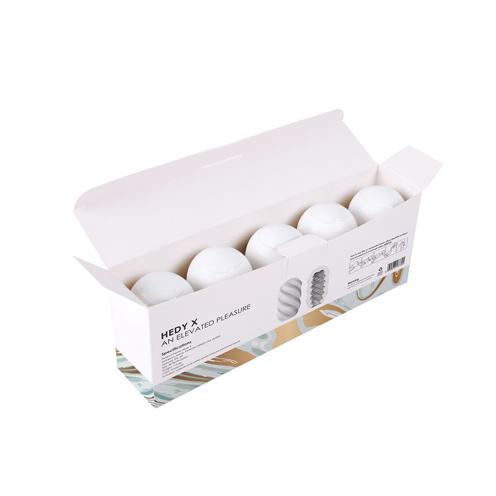 Яйця виготовлені з потовщеного ультра м'якого TPE для максимально яскравих відчуттів. Більш пружні, ніж стандартні Hedy! Матеріал є повністю безпечним для тіла. У набір яєць мастурбаторів Svakom Hedy X Control входить відразу 5 компактних яєць із дивовижною внутрішньою та зовнішньою текстурою. Випуклості, розташовані по спіралі, інтенсивно стимулюватимуть пеніс, а зовнішня текстура яйця ніби складається з безлічі найтонших шарів, покладених по спіралі, що забезпечує супер чутливі дотики. Ніжний матеріал добре розтягується, так що яйця ідеально підходять на будь-який розмір пеніса! У комплекті з кожним яйцем йде мініатюра лубриканта на водній основі (3 мл), тому можна відразу приступати до справи.