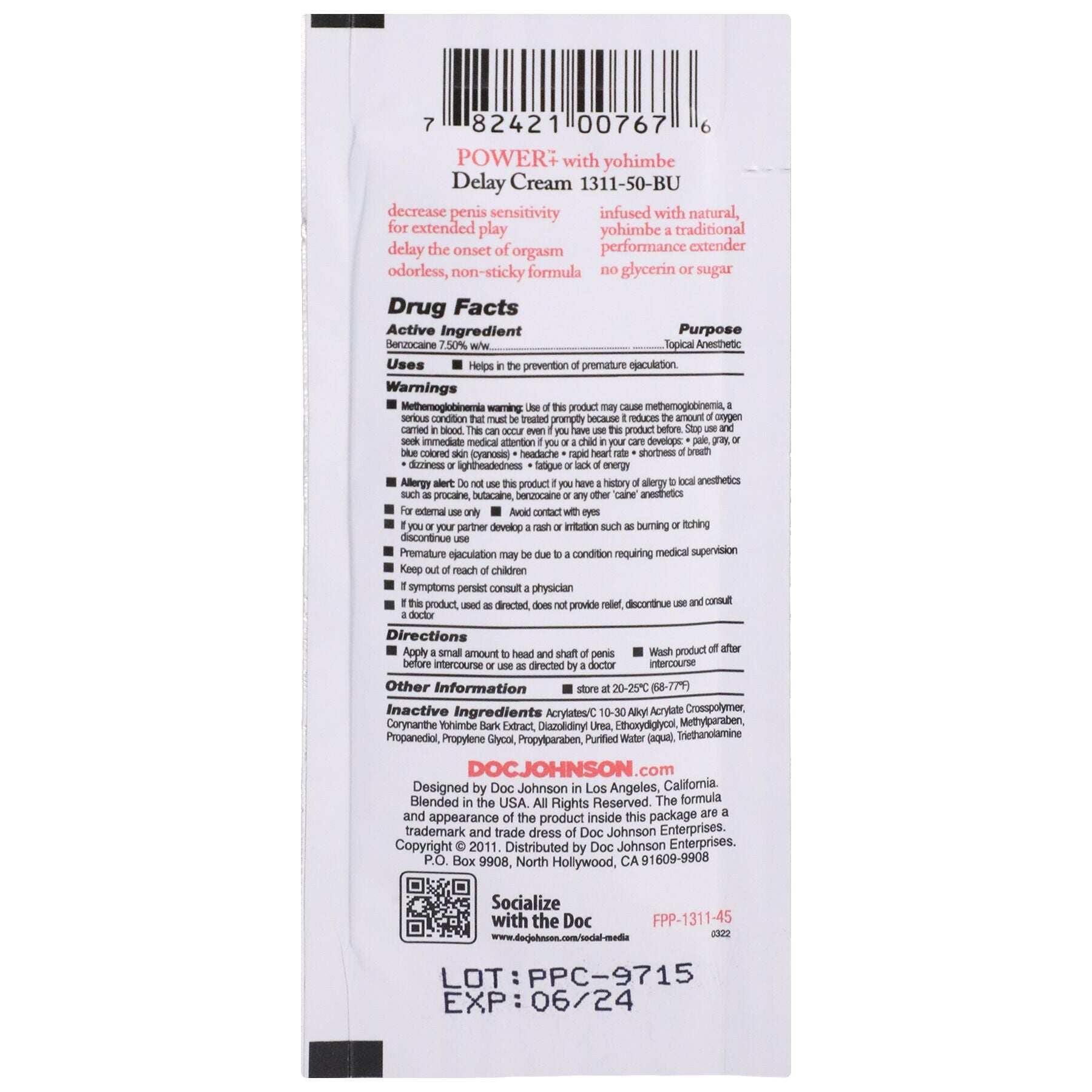 Отримайте ще більше задоволення з кремом Power+! Цей пролонгуючий крем містить 7,5% бензокаїну, який діє як десенсибілізуючий засіб, допомагаючи відстрочити або запобігти передчасній еякуляції. Відмінний варіант для цілої ночі пристрасті!