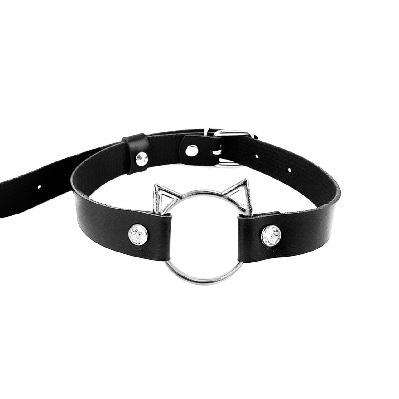 Чокер на шию Киця Art of Sex - Kiti з натуральної шкіри, колір Чорний