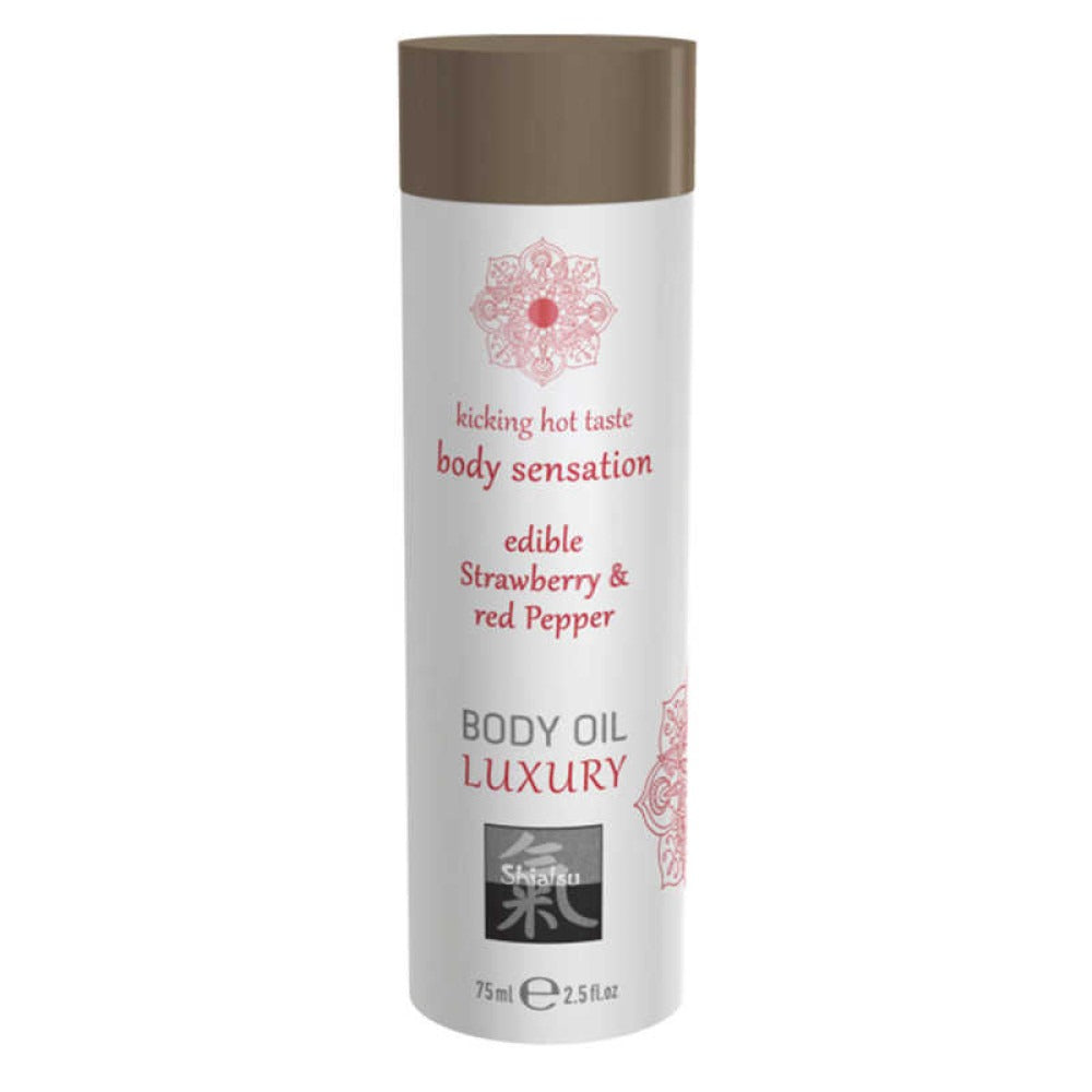 Їстівне масло для тіла SHIATSU полуниця і червоний перець, 75 мл